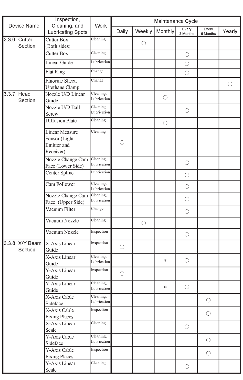 Refer to "3. Maintenance Spots" for the spots to be maintained.