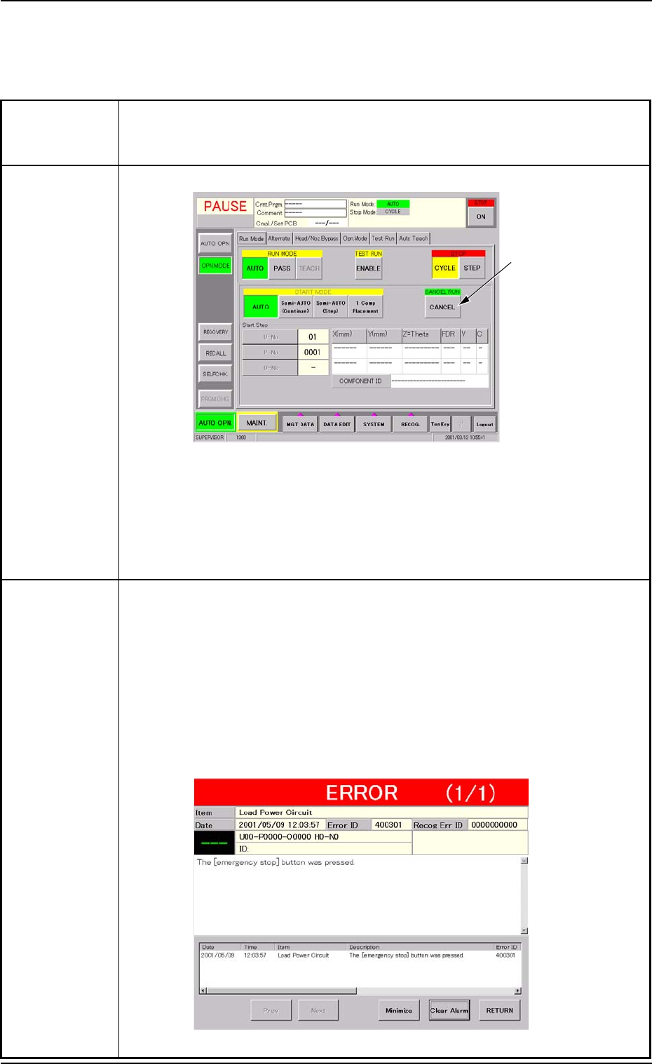 Cause (Cause 1) The [CANCEL] button was pressed.