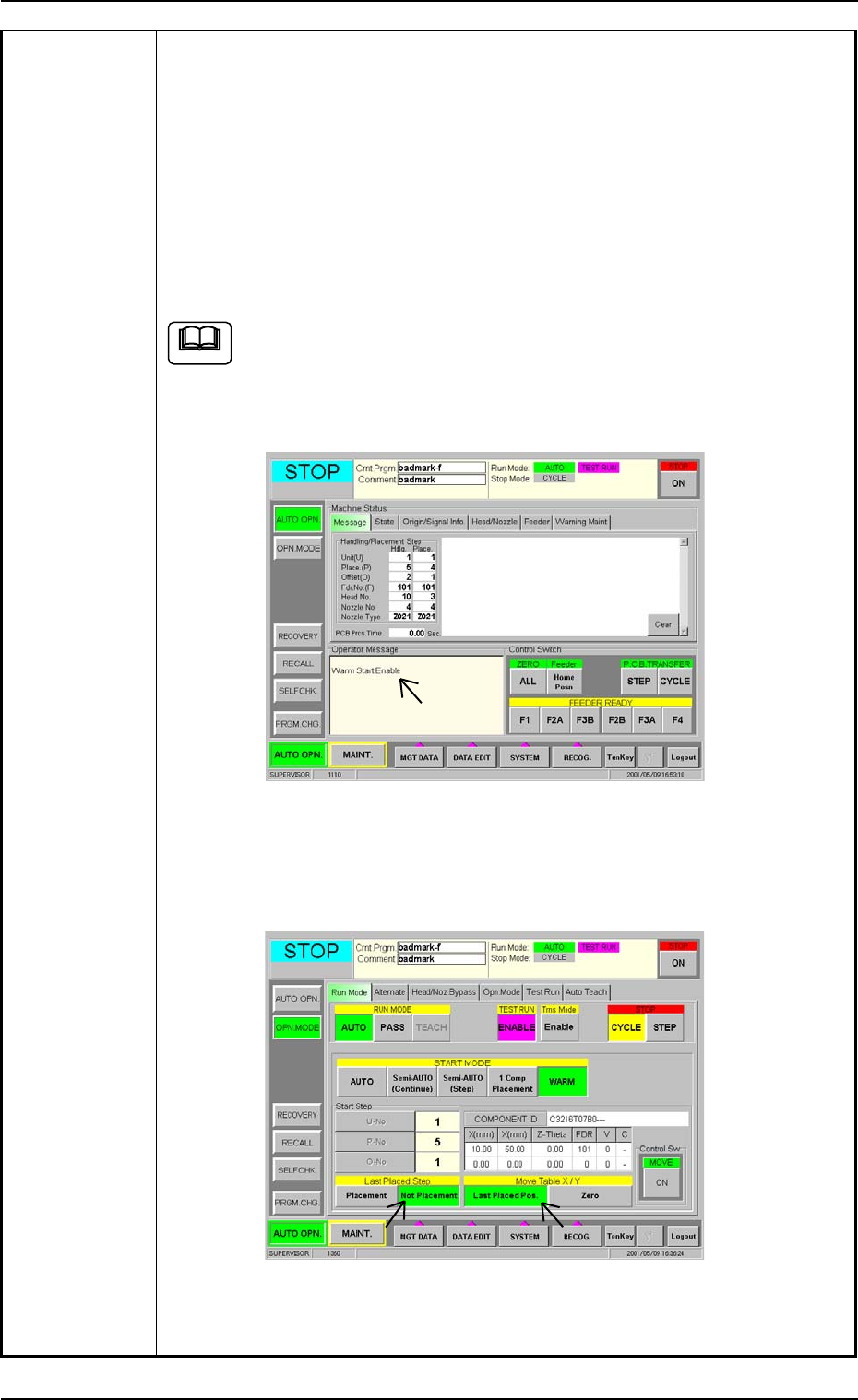 Message" pane in the "AUTO OPN." window, it means that the "Warm