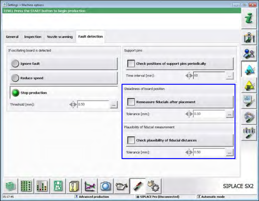In den Maschinenoptionen können zwei neue Optionen bei der Fehlererkennung eingestellt