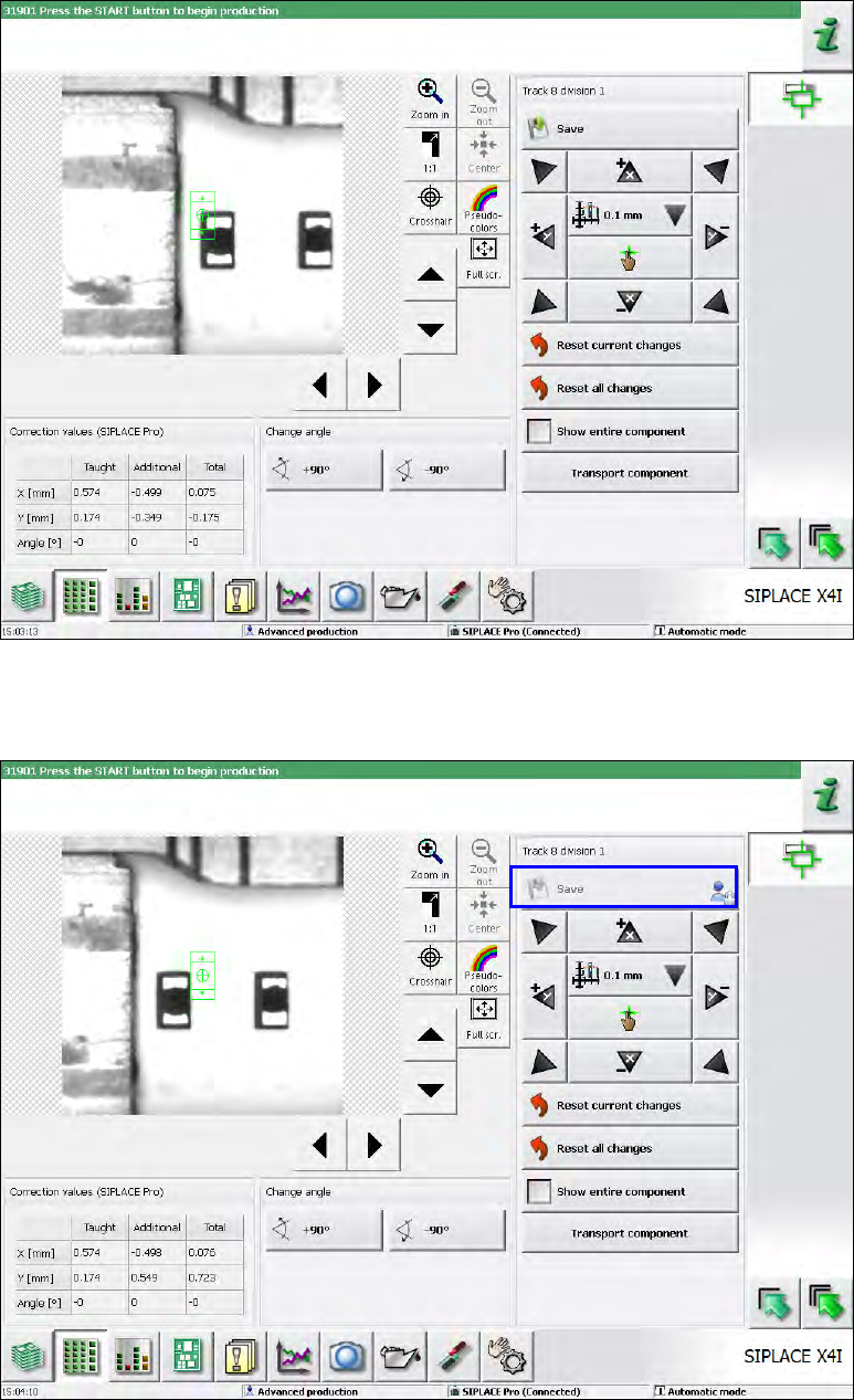 allowed correction area is exceeded, the Save button will be deactivated (greyed out).