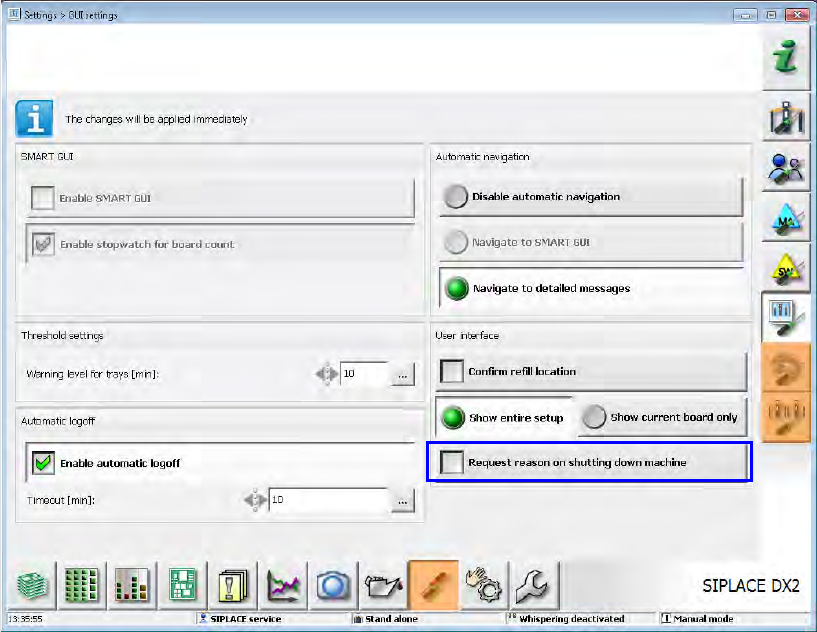 In order to find out the shutdown reason, a request can be activated under Settings – GUI