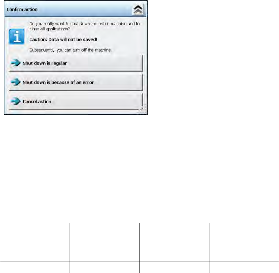 Station S oftware 70 6. 1 SP 2 /705.05 SP 2 / Vers ion De scription Ausgabe 07/2013 E dition 41 Figure 5- 21 : Conf irming shutdown The operator has to s elect either the Shutdown is regular or the Shutdown is because of…