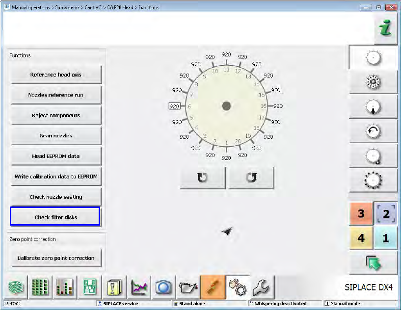 heads on the SIPLACE service activity level via the Check filter disks button.