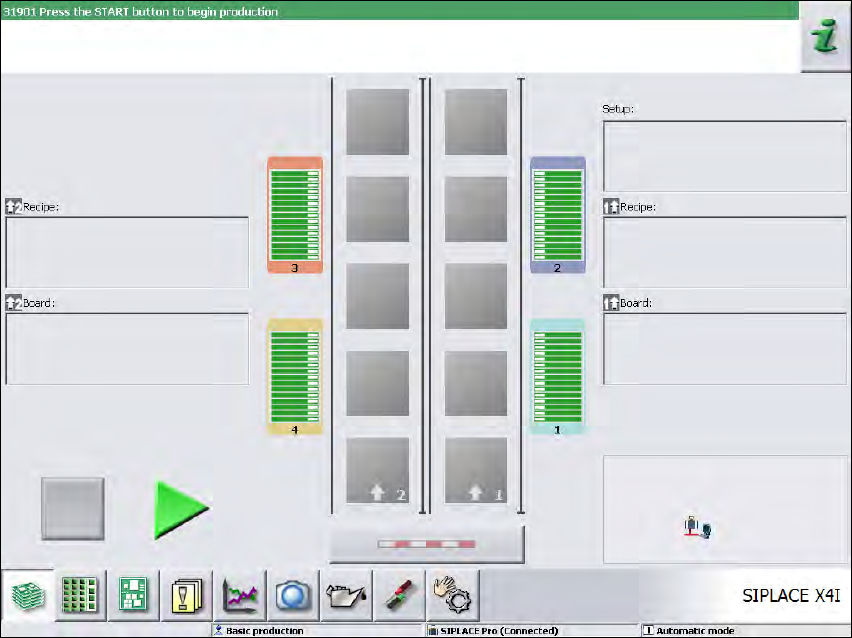 The icons, buttons and views are highlighted in different colors, e.g. if an operator action is needed.