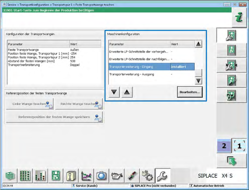 In den Hardware-Optionen für den Transport muss der Benutzer auf der Bedienebene Service