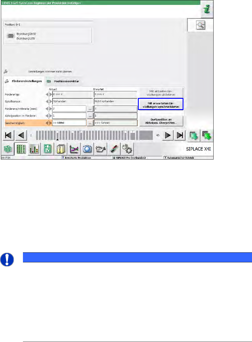 geänderten Rüstdaten von SIPLACE Pro wieder an der Station vorgegeben. Dort