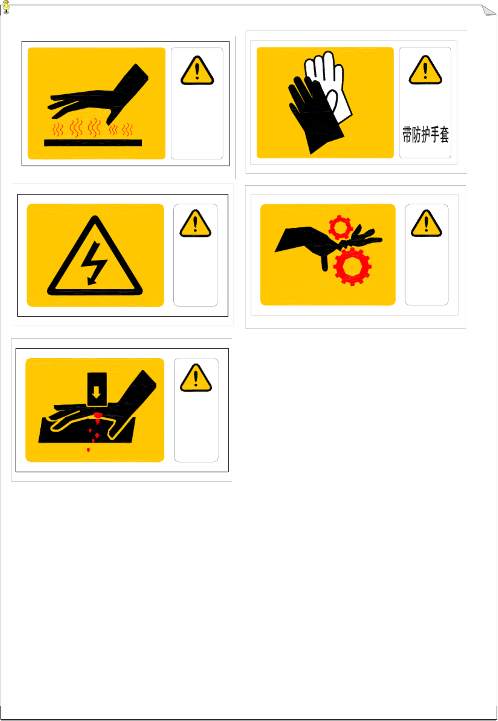 在操作时特别要注意的地方,本设备上都贴有警告标示,下页图(