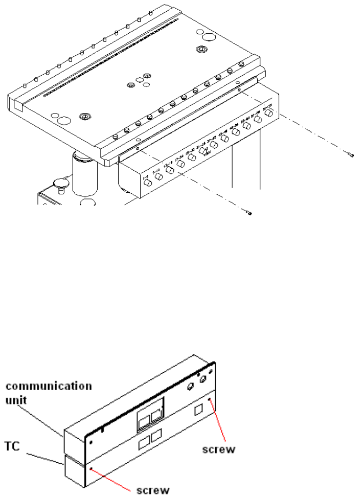 : Remove the communication unit. Loosen the screws that fix the unit to the changeover table
