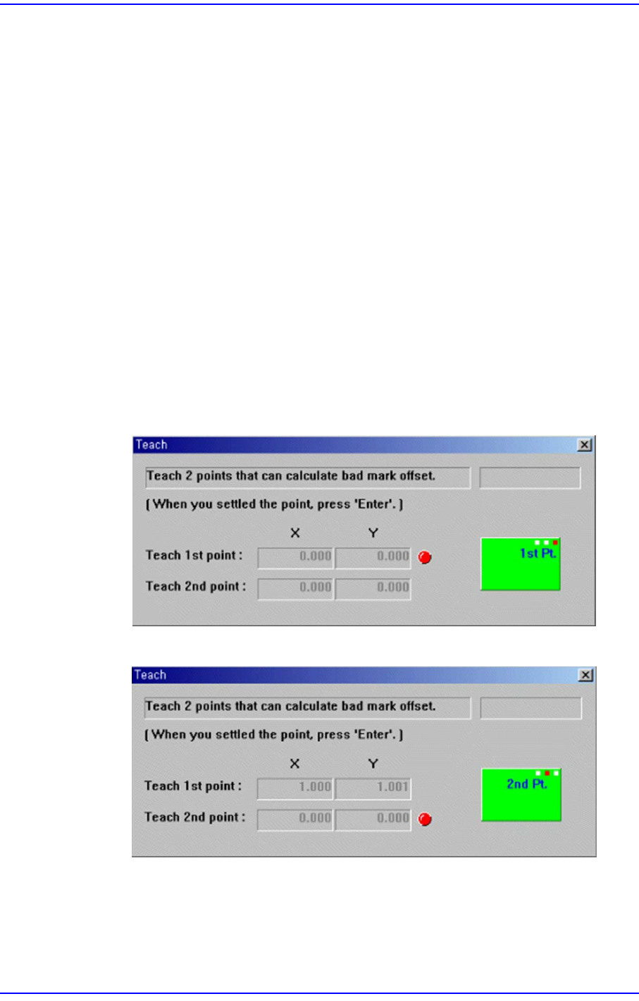 示教Bad Mark偏移。 此按钮示教Bad Mark的偏移量。按下此按钮时依次显