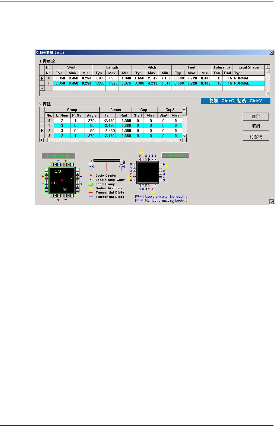 7-68 Fast Flexible Placer SM481( L) Administrator’s Guide 7.1.4.2. 脚组 设定 User IC 的引脚组。 可 设置的 Lead Group 最大 个数为 16 个。 图 7.26 ”User IC 的引脚参数 & 组 ” 对话框的 ” 脚组 ” 设定画面 < 脚组 > 领域 设定引脚组。 <Group No.> 列 表示脚组的编号…