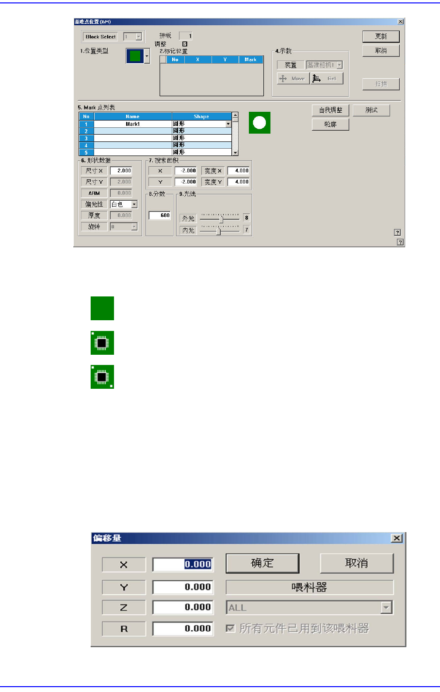 贴装点上有基准点标记时,设定基准点标记的数据。单击此按钮时显示如下的