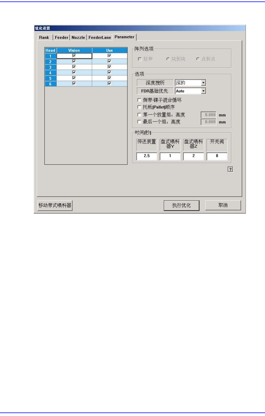储存已设置的选项并执行优化器 (Optimizer)。单 击 <移动带式喂料器 >按钮腾空