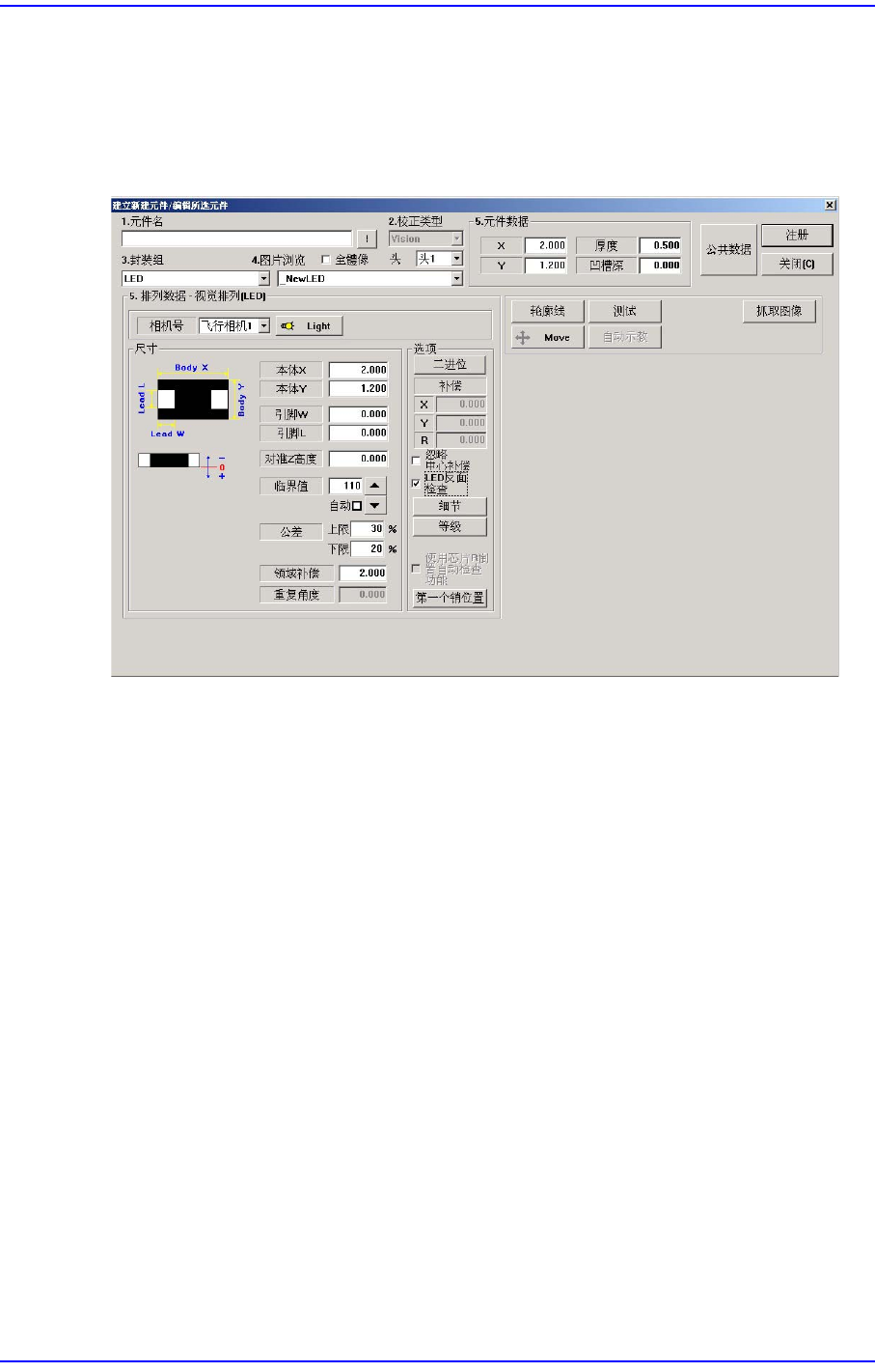 对于LED 元件识别的主要选项如下。