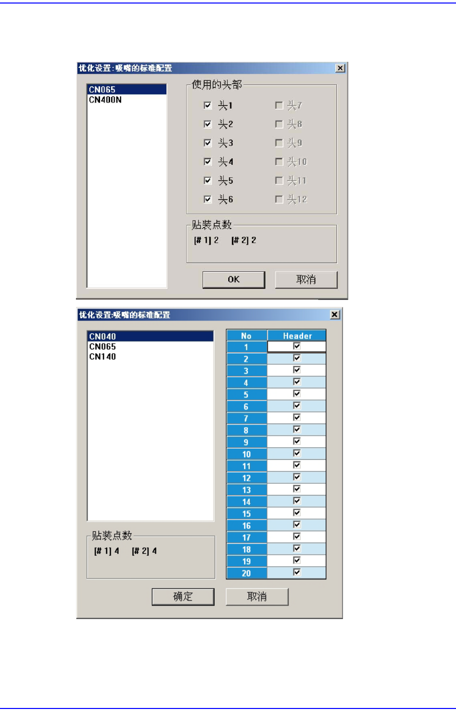 用来给每个吸嘴分别指定合适的头 , 点击此按钮后则显示下面的对话框。