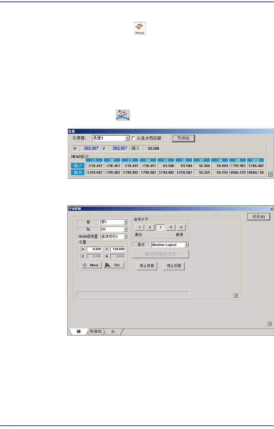 点击此按钮与图标菜单中选择 图标拥有相同功能,执行 “手动控制” 对话