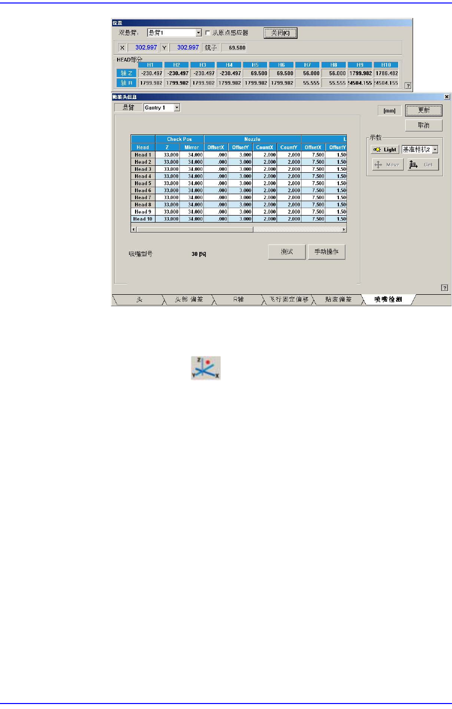 2) 在 Nozzle Check TAP 对话框单击< 手动操作> 键,执行“手动控制”对话
