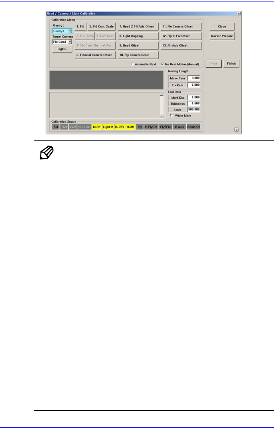 14-56 Fast Flexible Placer SM481( L) Administrator’s Guide 14.3.7.5. Fly Camera Scale Calibration 测量飞行相机的标度 (Scale) 。 为了执行飞行相机的标度 校正作业之前首先要确认校 正 To o l 是否在 ANC 的校正 To o l 处。 下面是 Fly-Camera Scale Calibration 的校正步骤。 1. 点击 …