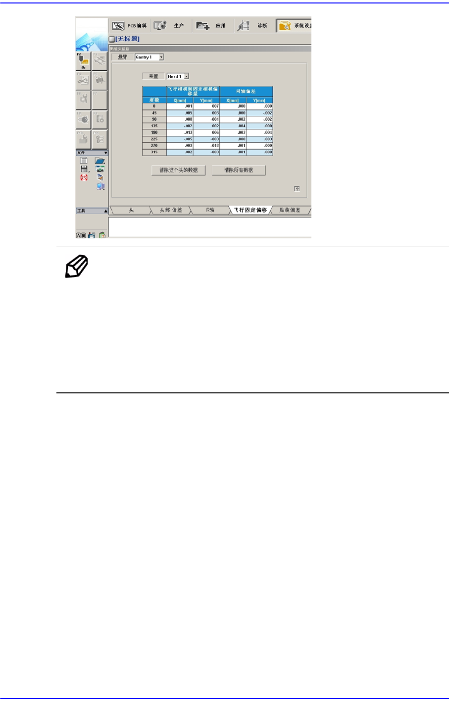 选择< 没有实际运动(手动)> 校验框后,执行校正会在各Head 手动插入吸嘴,