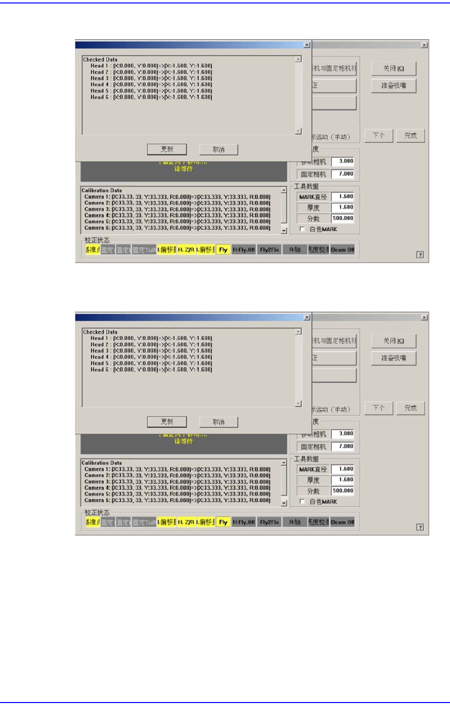 5. 显示“将Z轴移至低处… 请等一会”消息。显示是否跳跃对 Head1的校正进行的