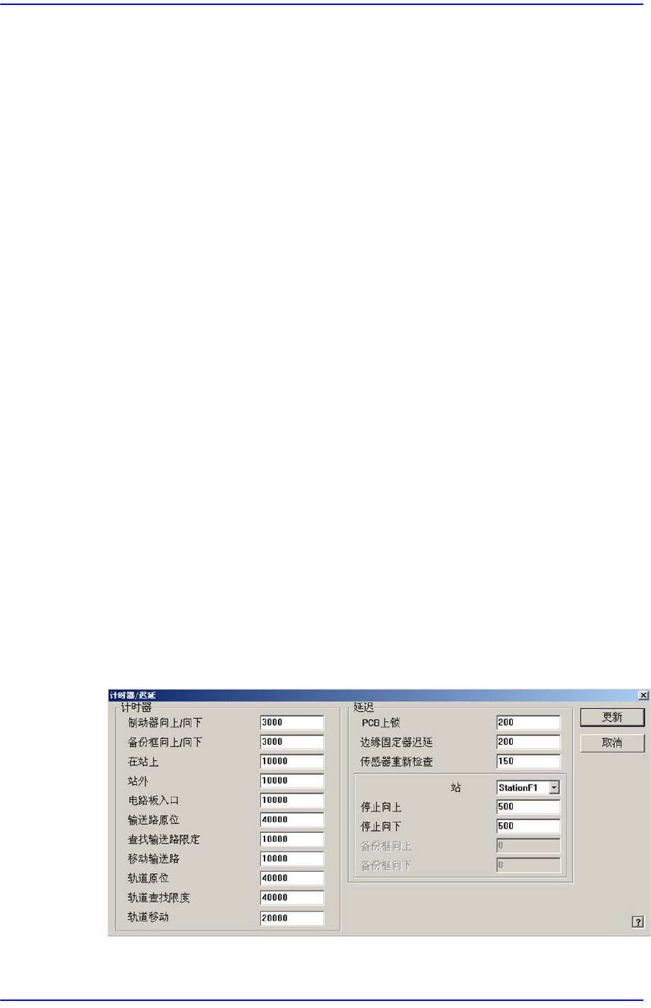显示可以进行传送带相关Timer 设置与延时设置的‘计时器/误延’ 对话框。