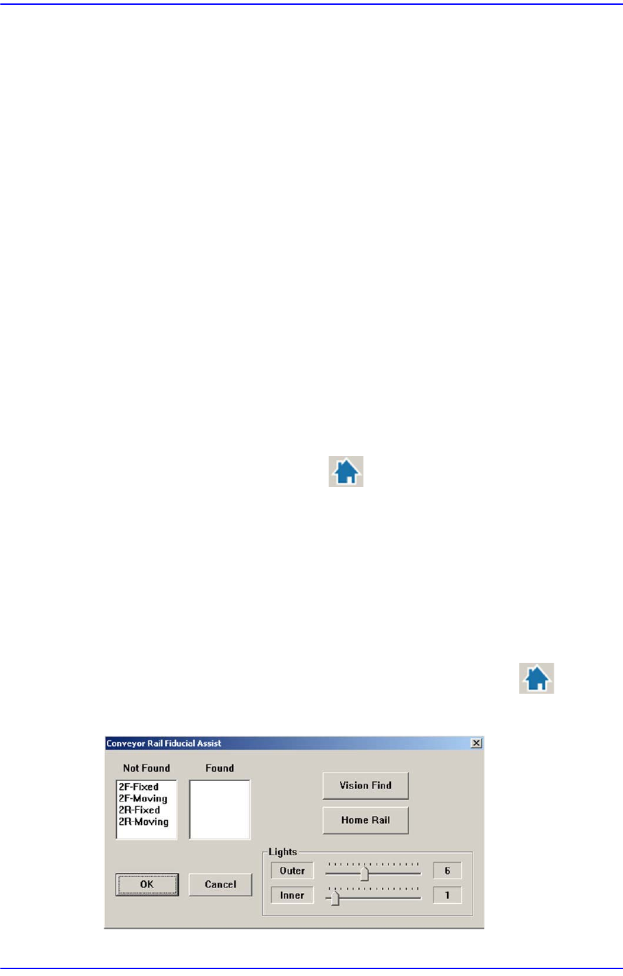 15-7 系统设置 <Not Found> 目录框 显示识别失败的输送机轨道上 的 Fiducial 。 <Found> 目录框 显示识别成功的输送机轨道上 的 Fiducial 。 <V ision Find> 按钮 对输送机轨道上的 Fiduci al 再次进行识别。 <Home Rail> 按钮 执行对 Wi d t h 伺服马达的 ‘Home’ , 把输送机的 Mo…