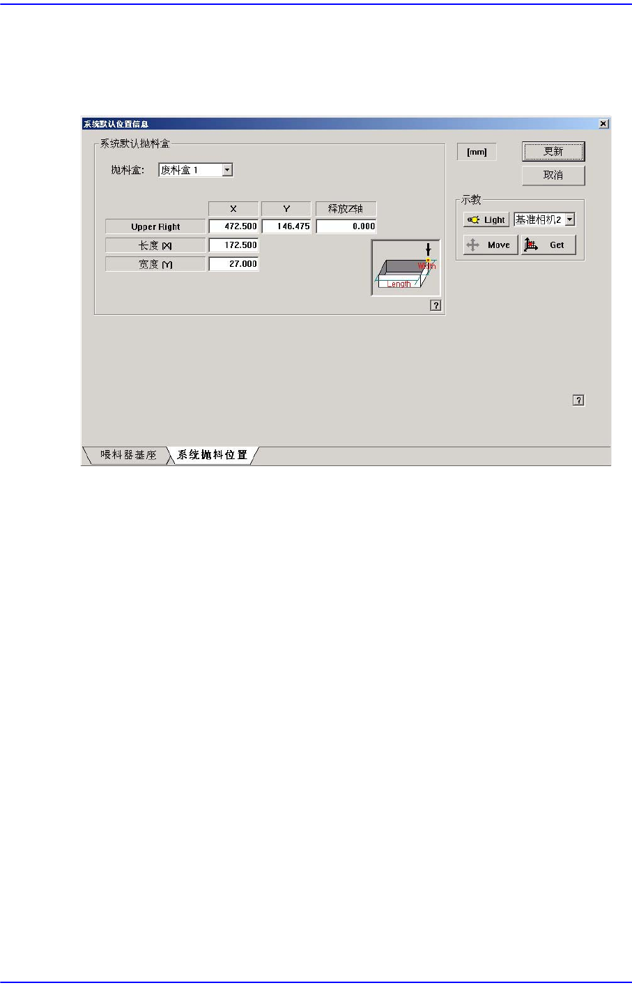 X, Y: 示教X, Y 坐标输入在Dump Conveyor上的 Dump位置。