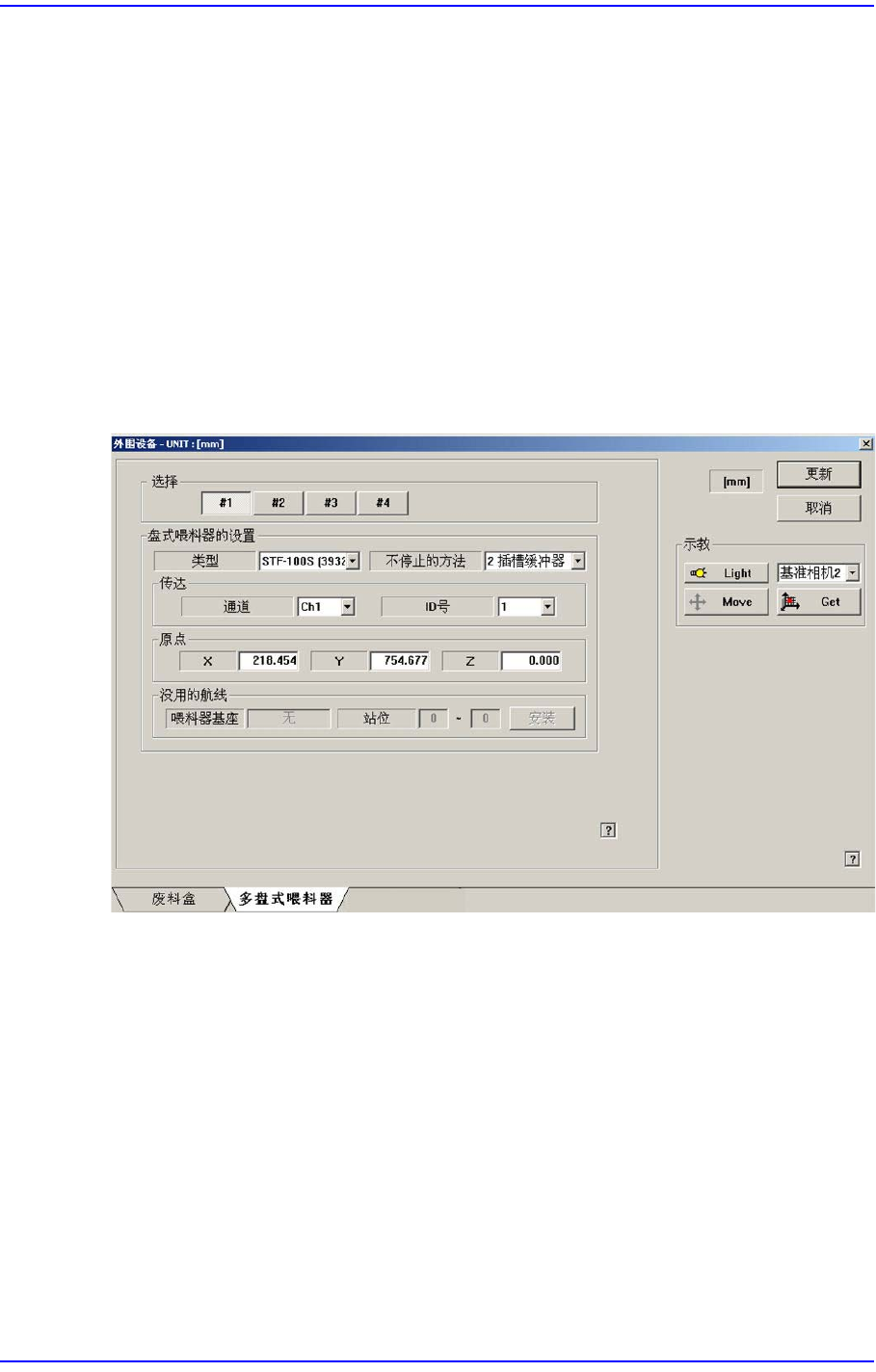 使用已选择的盘式喂料器单位时,设定被该盘式占有的喂料器基座单位和Slot。