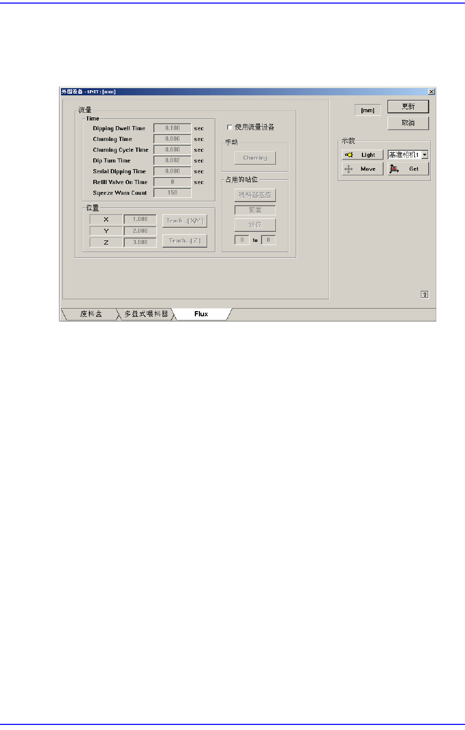 选择右侧<Use Flux Device>选择框时被激活。设定Dipping Position。在Flux