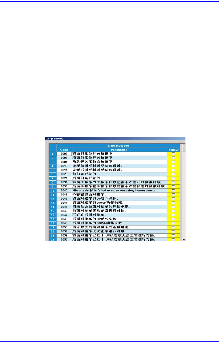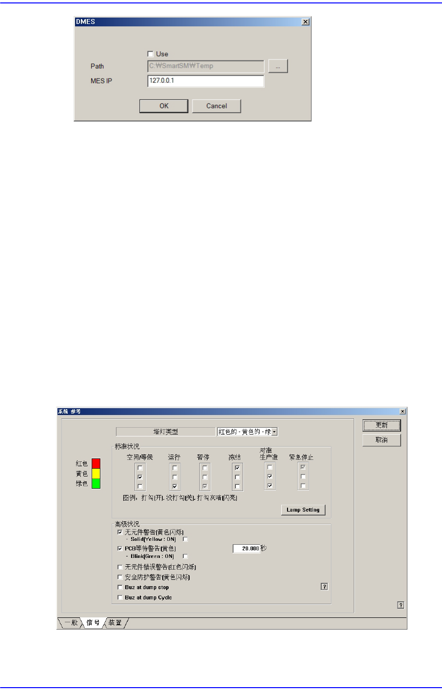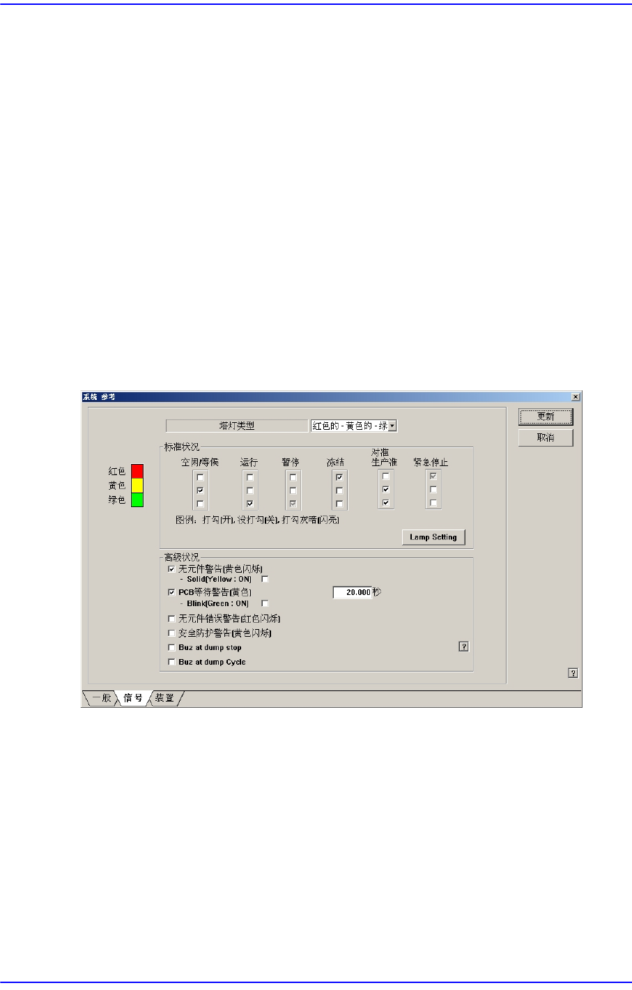 15-31 系统设置 红 - 黄色 - 绿色 : Signal T ower 灯的构 成为 ” 红色 – 黄色 – 绿色 ” 的情况。 红 - 蓝色 - 绿色 : Signal T ower 灯的构成为 ” 红色 – 兰色 – 绿色 ” 的情况。 (CE 规格 ) < 标 准状况 > 领域 设定显示设备的状态的 Signal Light 灯 的状态。 比如说, 空闲 / 等候状态下需要开 Signal T o w…