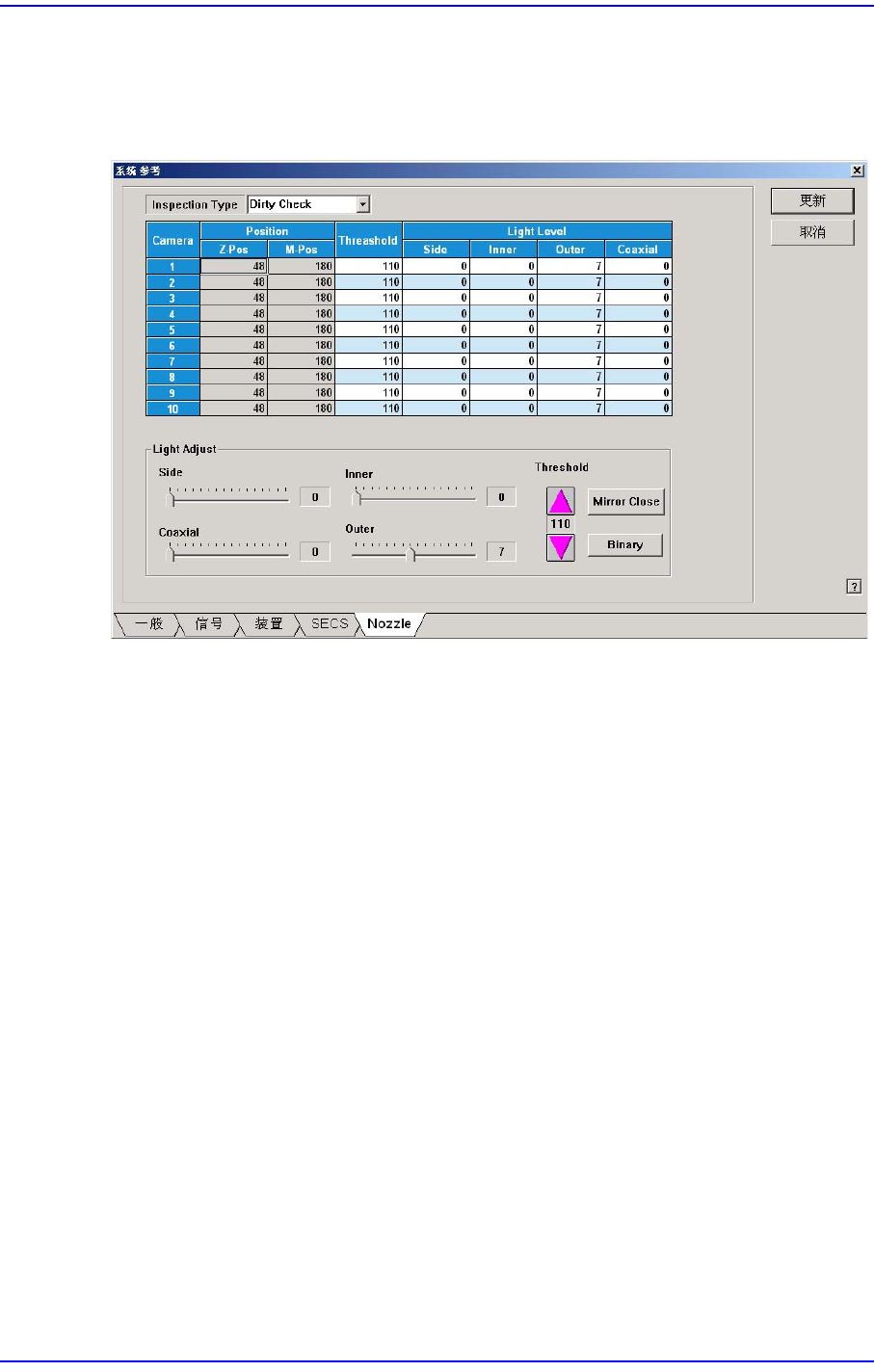 针对识别吸嘴尖头污染程度的视觉的Threshold进行设置。