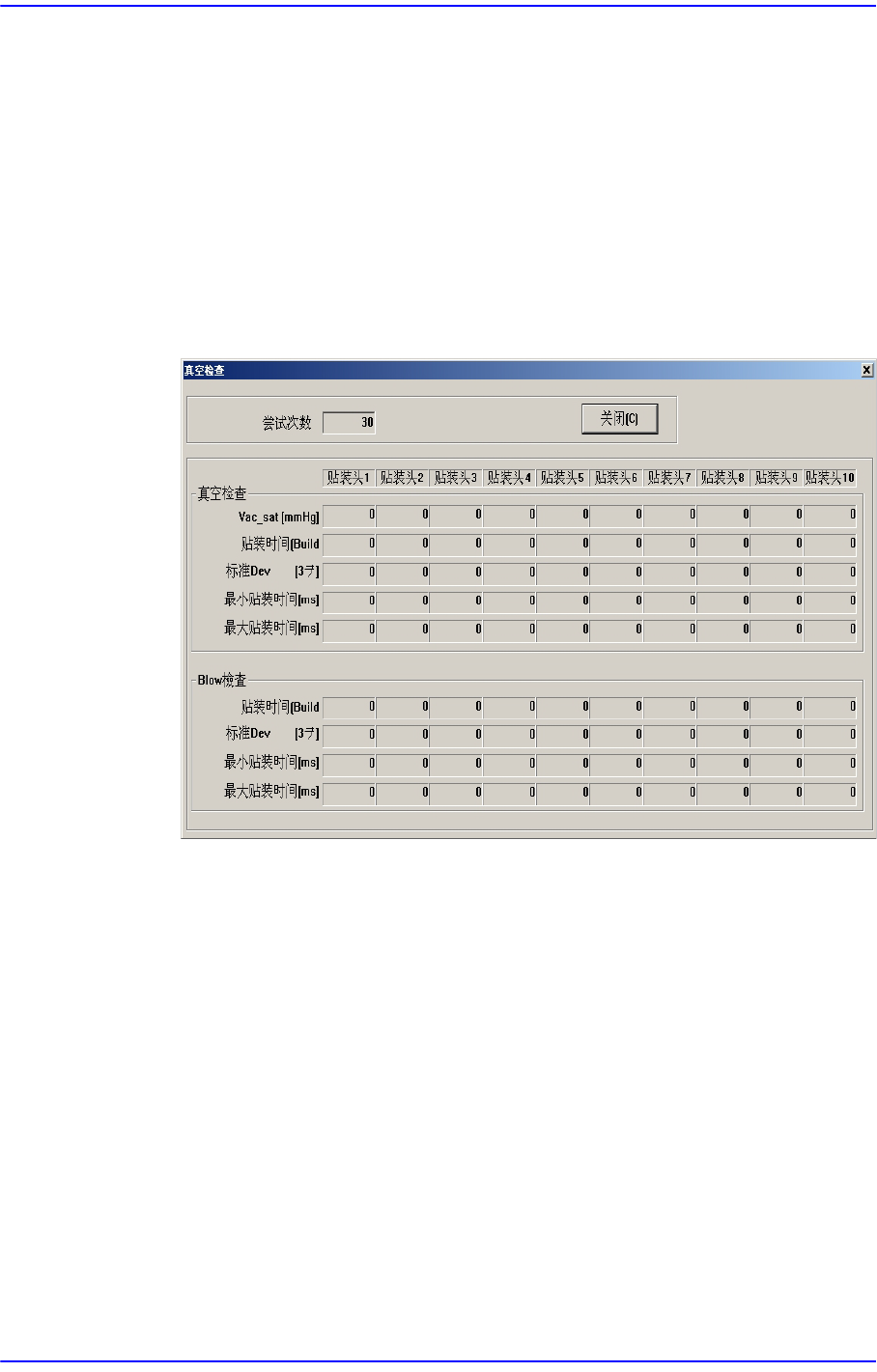 16-9 Diagnosis( 诊断 ) <V alve Check> 按钮 为了确认生成真空 (V acuum On) 与破坏 真空 (V acuum Off) 的执行是否正常而检查 电磁阀。 检 查时, 以手动方式把 CN040 吸嘴插入贴片 头主轴的吸嘴夹持器后检 查。 下面的对话窗口显示了利用 CN040 吸嘴进行检查 的结果。 <T ry> 组合框 输入生成真空 (V acuum On) 与破坏…