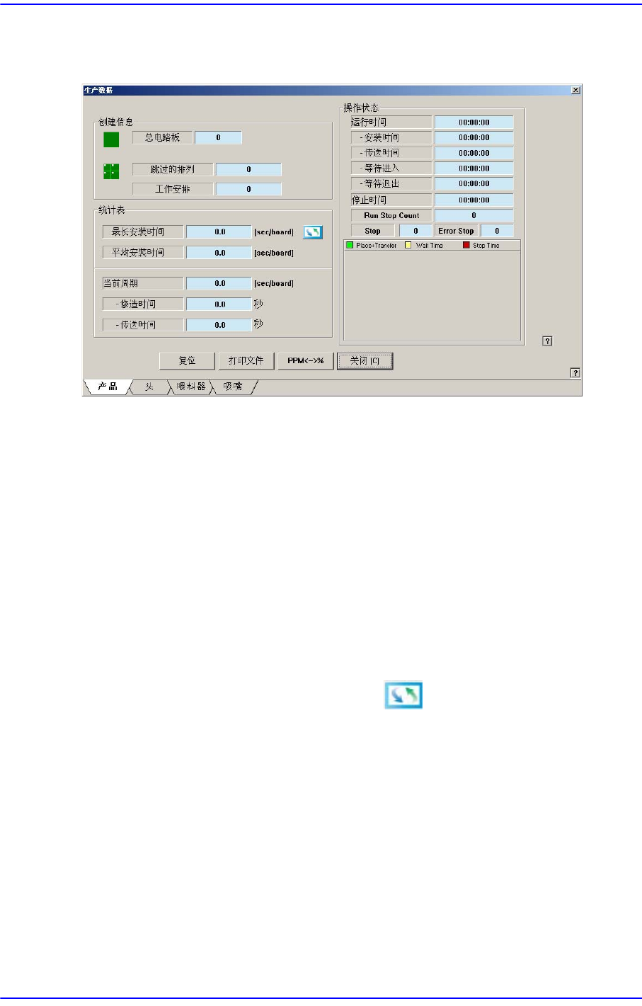 显示与贴装时间有关的信息。点击右侧的 按钮则显示各个不同形态的信