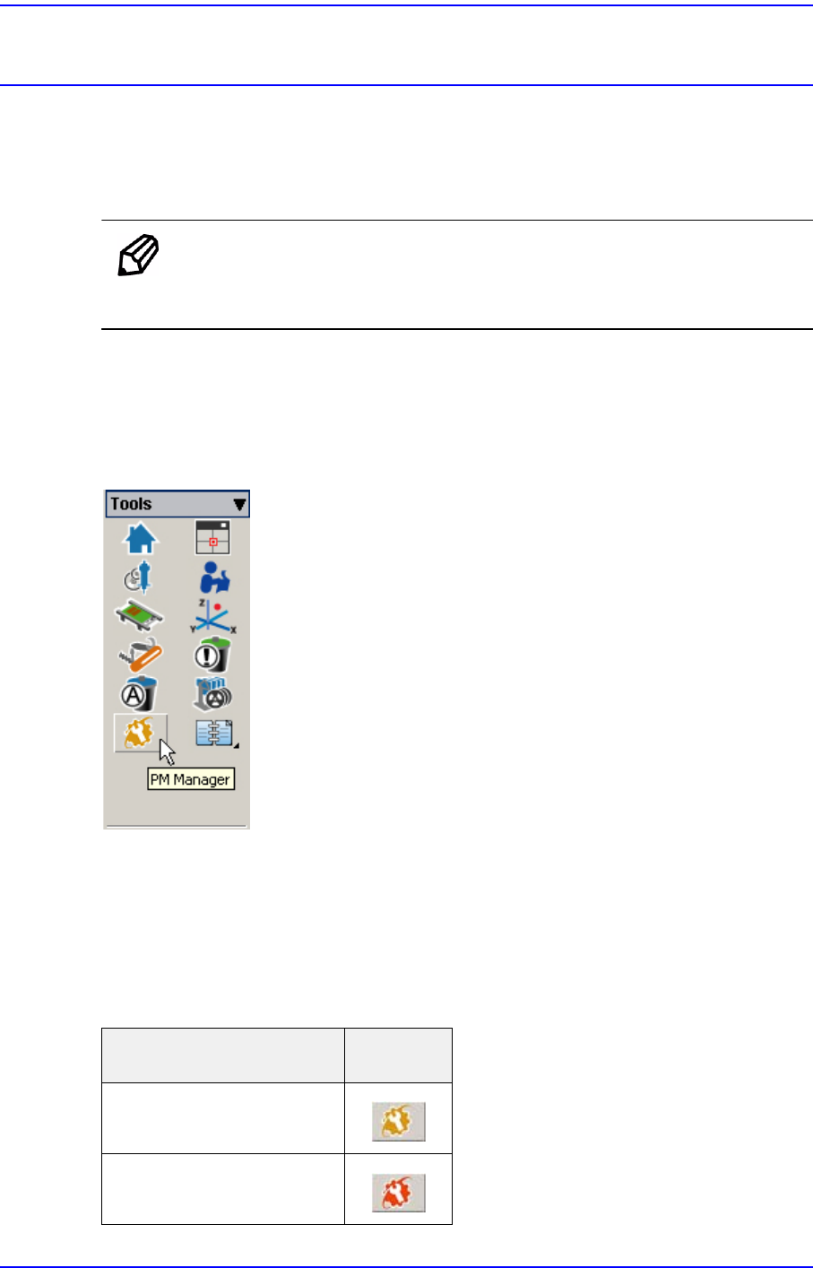 通过PM Manager 执行按钮的颜色可确认PM Manager的当前状态。各按钮的颜色表