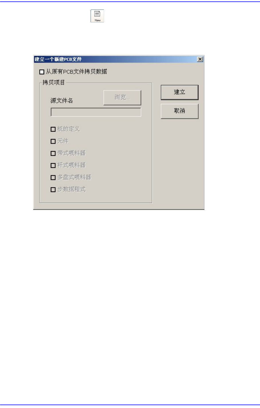 用设定的内容来建立新的PCB文件。没有指定所要拷贝的原本文件时,在<项目