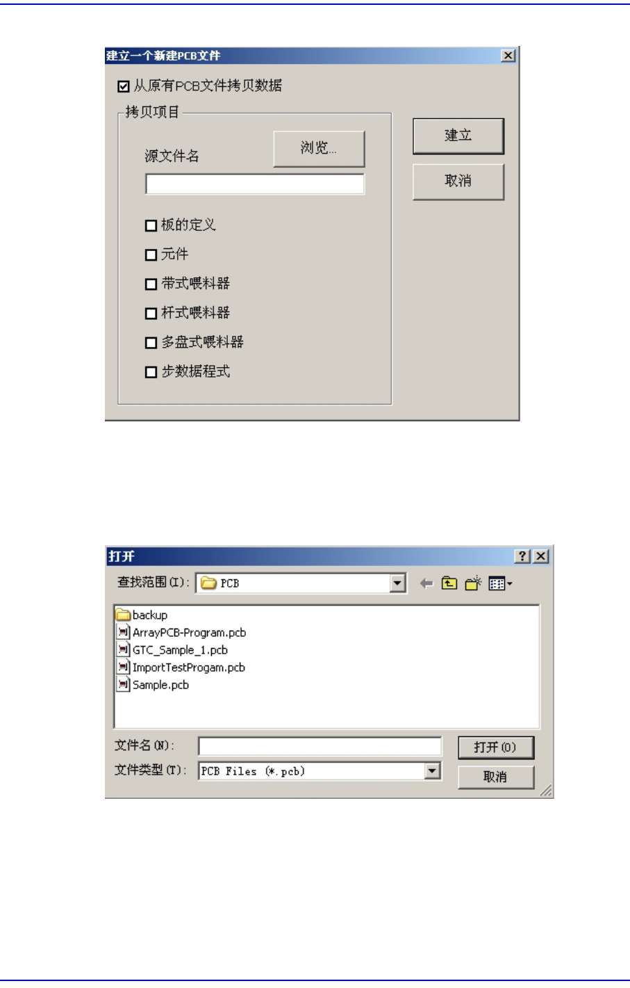 3-3 File 简化操作 (shortcut) 菜单 图 3.3 “ 产生一个新的 PCB 文件 (新建 PCB 文件) ” 对话框 < 浏览 ...> 按钮 利用已有的文件建立新 PCB 文件时选择此按钮。 单击此按钮时, 显示 ” 打开 ” 对 话框。 图 3.4 “ 打开 ” 对话框 < 查找位置 > 组合框 指定文件所在的目录。 并把指定目录中的 文件显示在 < 文件目录 > 目录框…