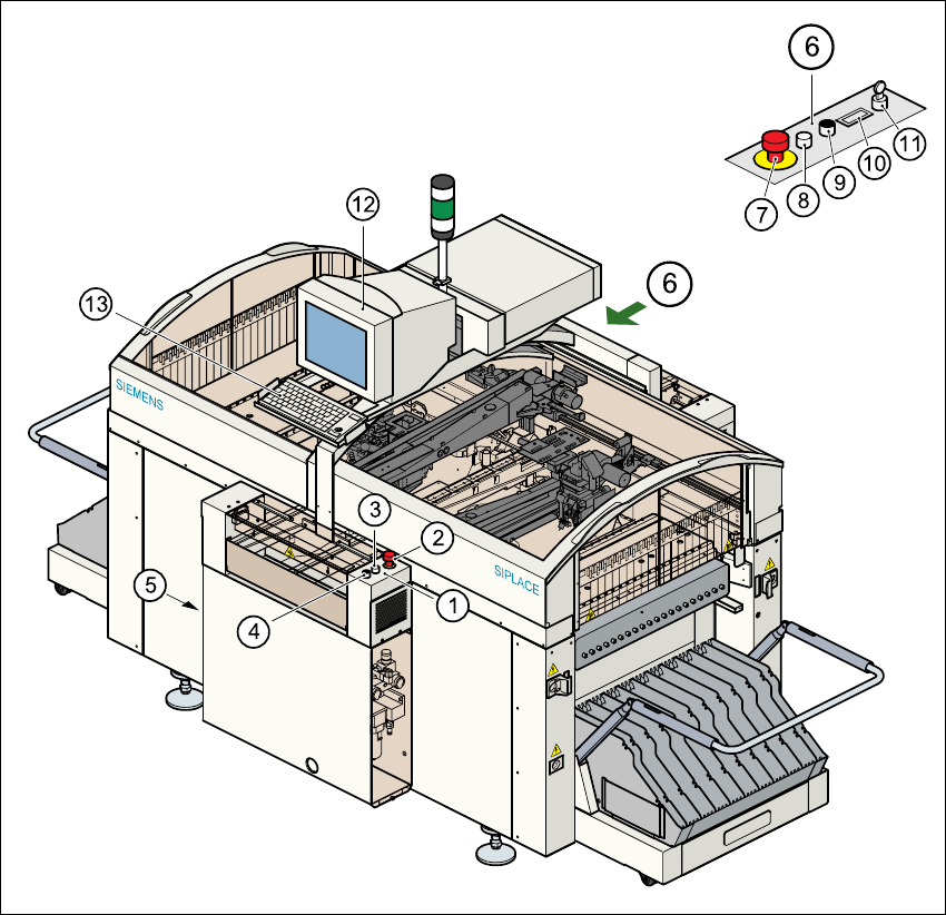 The main switch is used to switch the power supply to the placement system on and off.