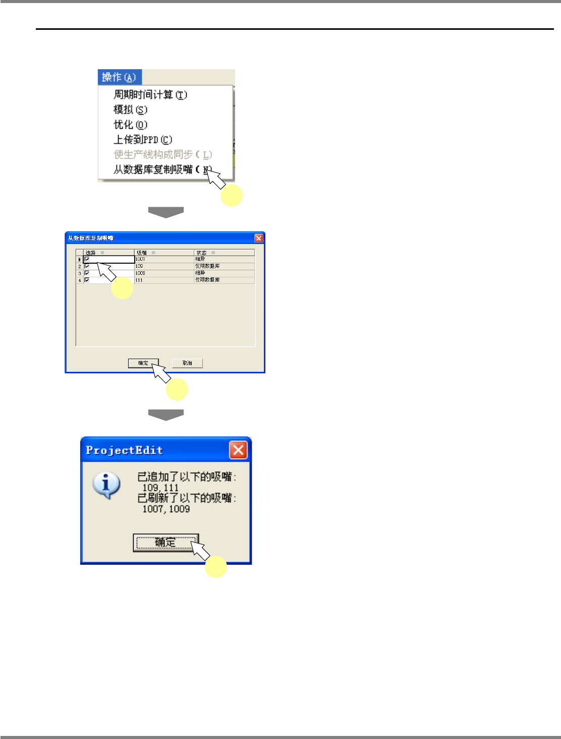 将添加或更新所选择的吸嘴。