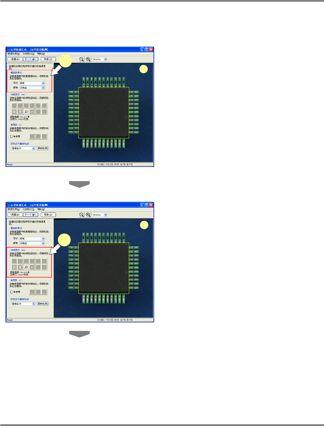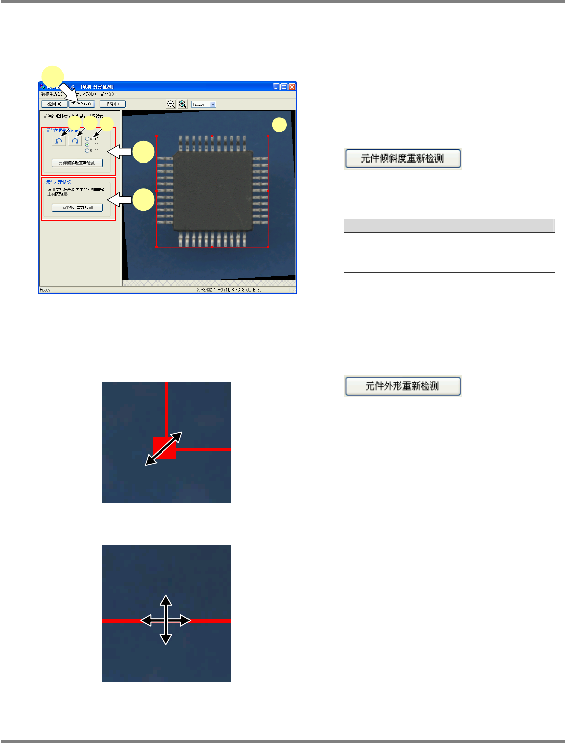 在本操作画面上自动计测元件的倾斜度及外形,并进行补正。有错误时需要靠手工修正。