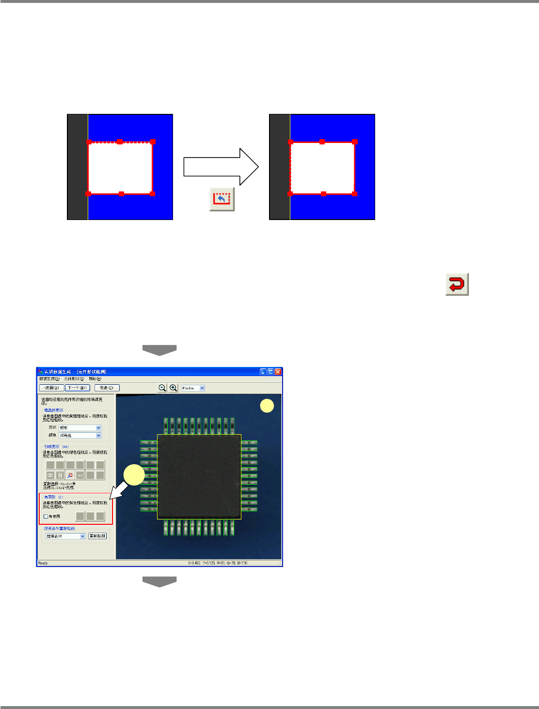 NPM-DGS 程序手册 11.4 用扫描设备制作识别选项数据的详 情 EJS9AC-MB-11P-01 Page 11-19 更改电极的方向。 通过自动检测能辨别电极方向时,用 虚线显示电极的根部。未能通过 自动检测辨别电极方向时,请选择菜 单的 [ 元件形状 ] [ 引线更改 ] [ 电极方向更改 ] ,或者点击 [ 电极方向更改 ] ,或者用鼠标双击根部框线, 以 修正到正确方向。 电极移动主体尺寸的一半以上距离时…