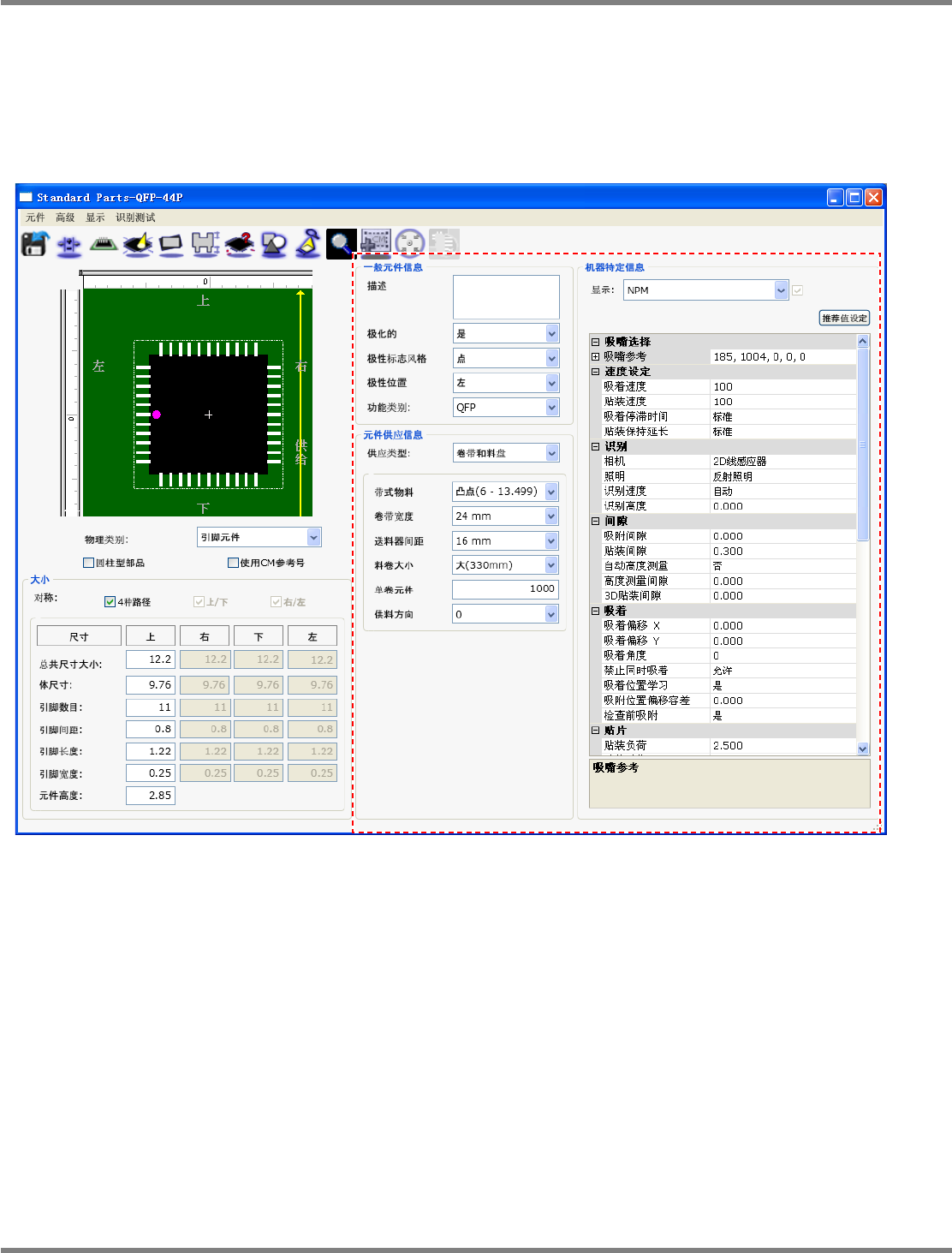 的元件编辑器进行供给方法、设备动作的有关参数等识别数据以外的设定。