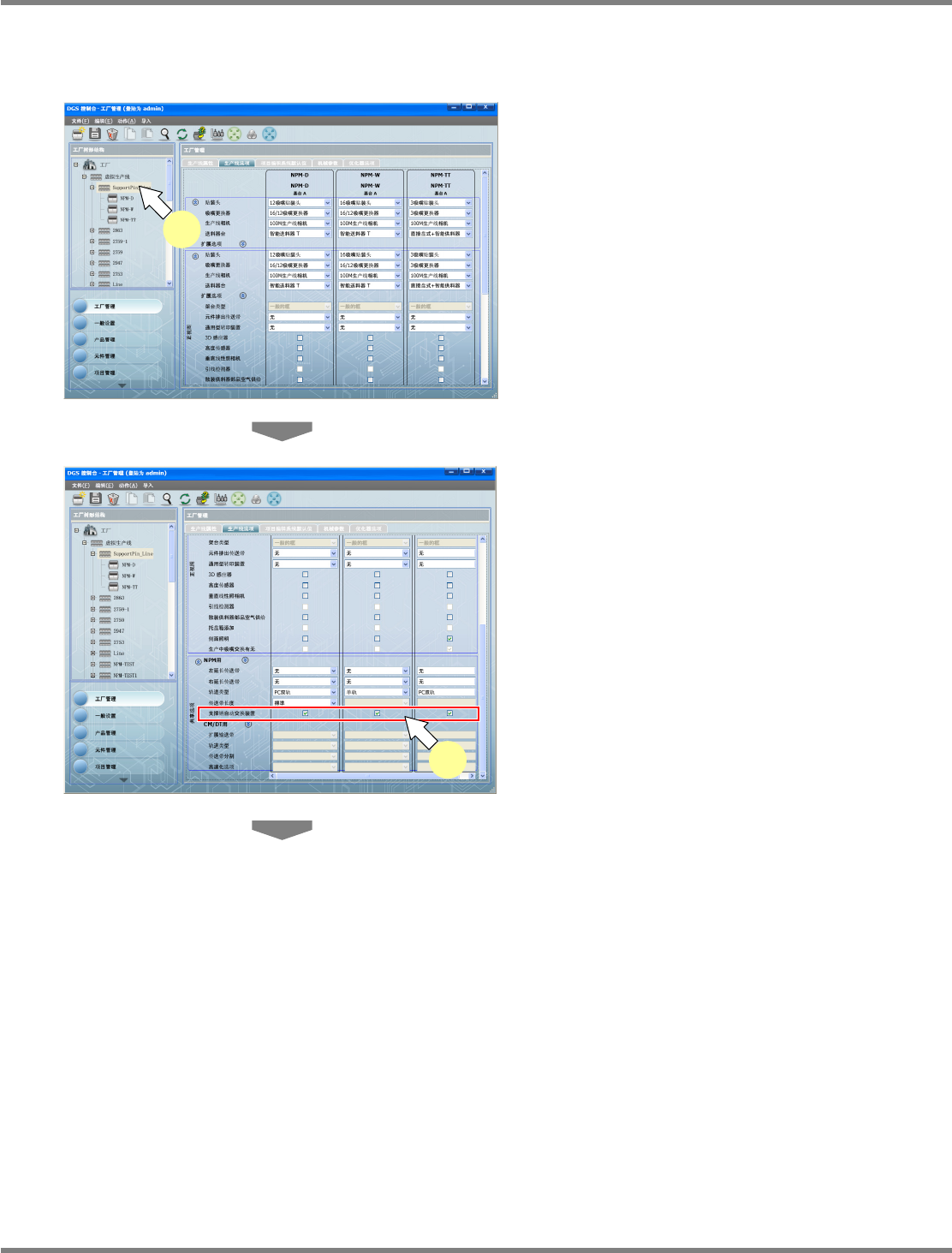 NPM-DGS 程序手册 13.2 支撑销配置数据的编制功能 Page 13-16 ECS9AC-MB-13P-02 3 选择需要设定支撑销的设备后,打开 [ 项目编辑系统默认值 ] 。 4 将软开关上的 [NPM] [ 支撑销 ] [ 自动更换 ] 设定为 [ 是 ] 。 在数据编制项目默认值下的支撑销设 定,还可 在数据编制项目编辑器上进行。 Howto130204S-0 4C00 4 Howto130204S-0 3C…