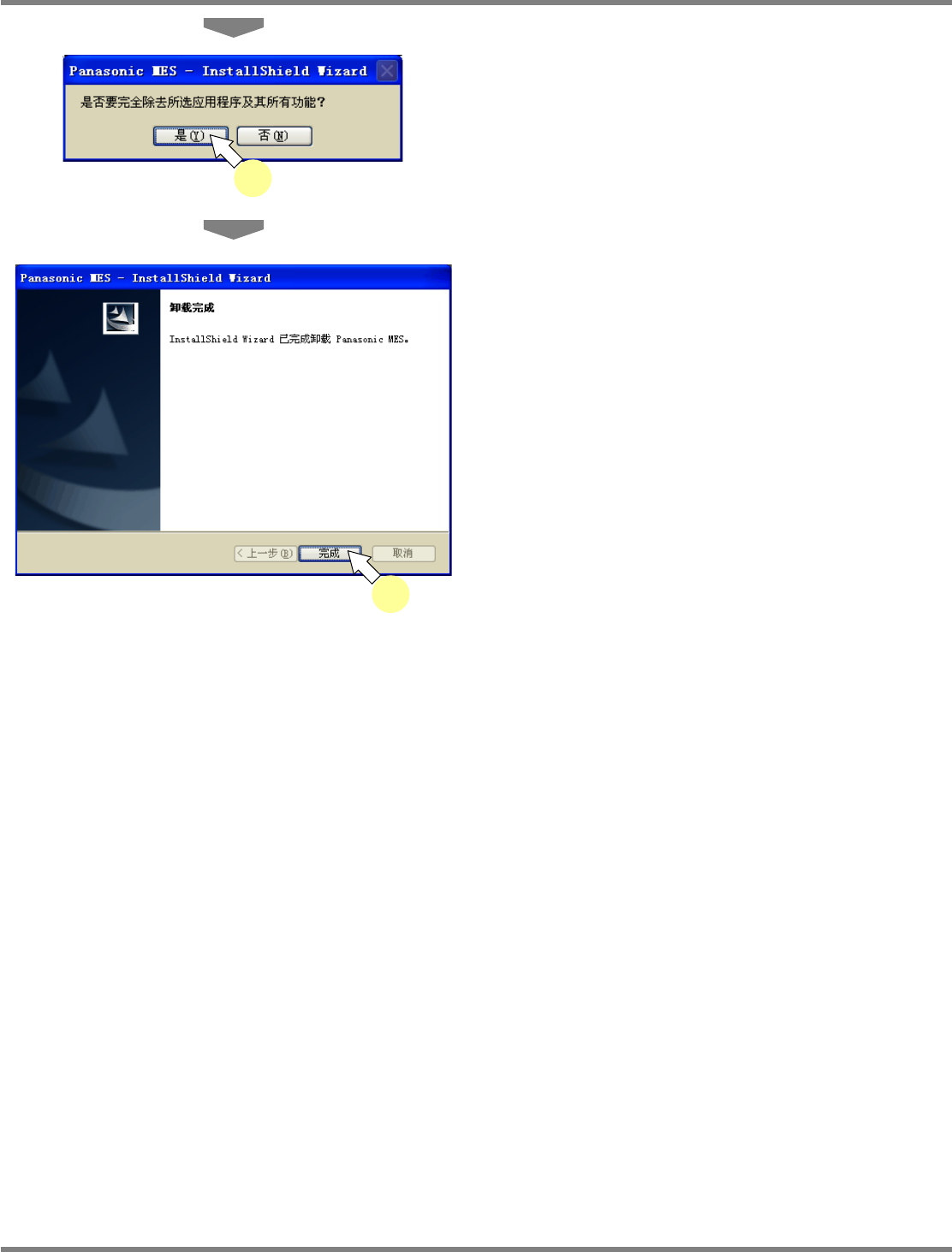 NPM-DGS 程序手册 2.5 DGS 的卸载 Page 2-88 EJS9AC-MB-02P-01 5 点击 [ 是 ] 。 显示出卸载画面。 6 点击 [ 完成 ] 。 关闭卸载画面。 Install020600S-0 4C00 5 Install020600S-0 5C00 6