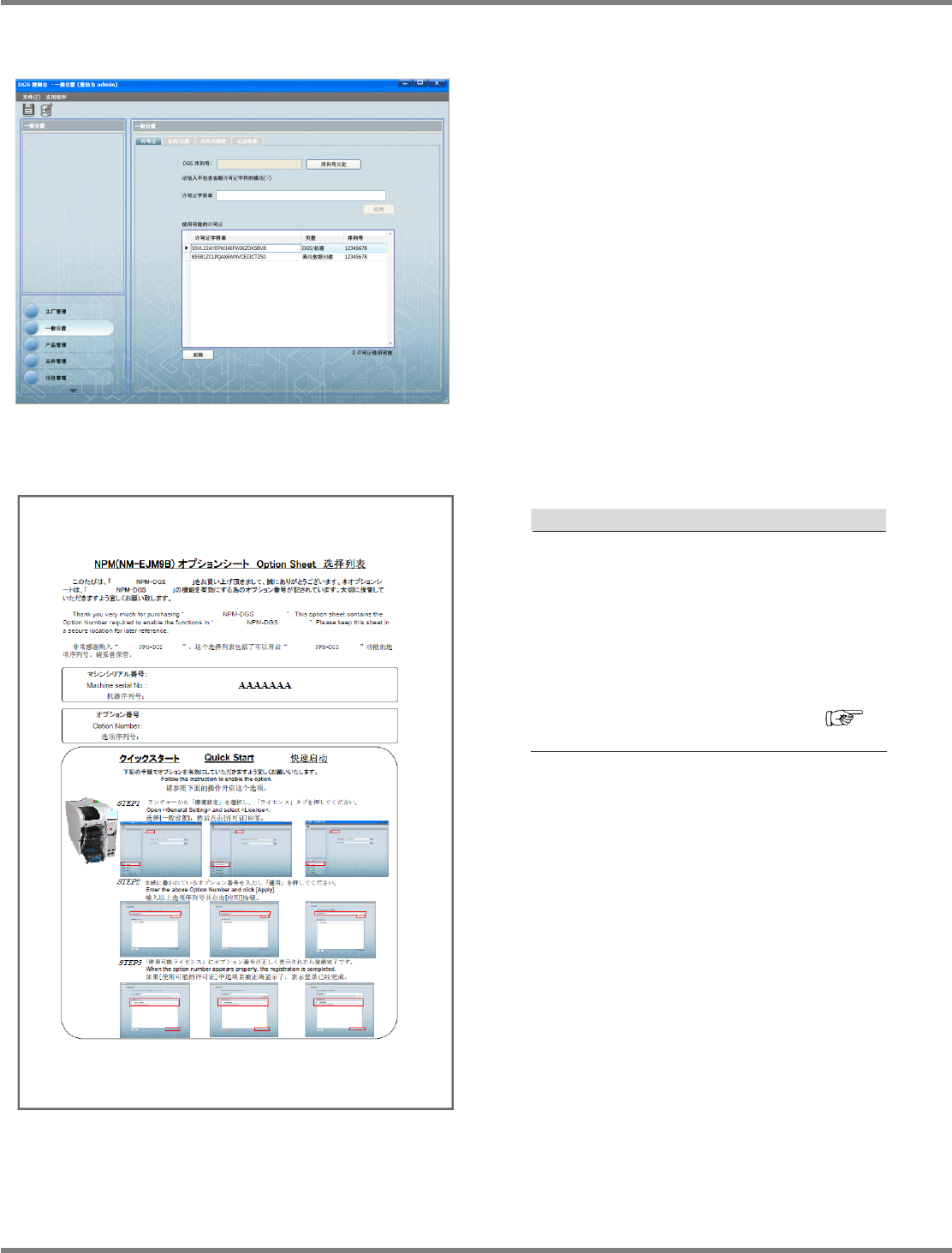 许可证设定画面。在许可证设定中设定生产数据