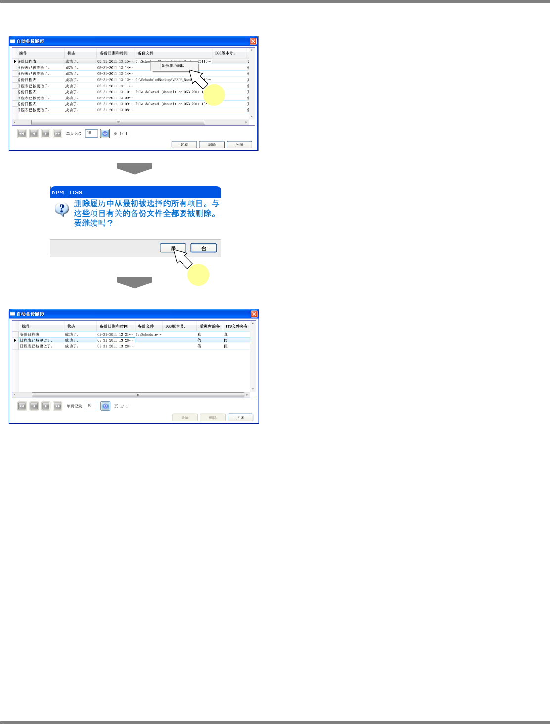 需要删除履历、备份文件时,从一览中