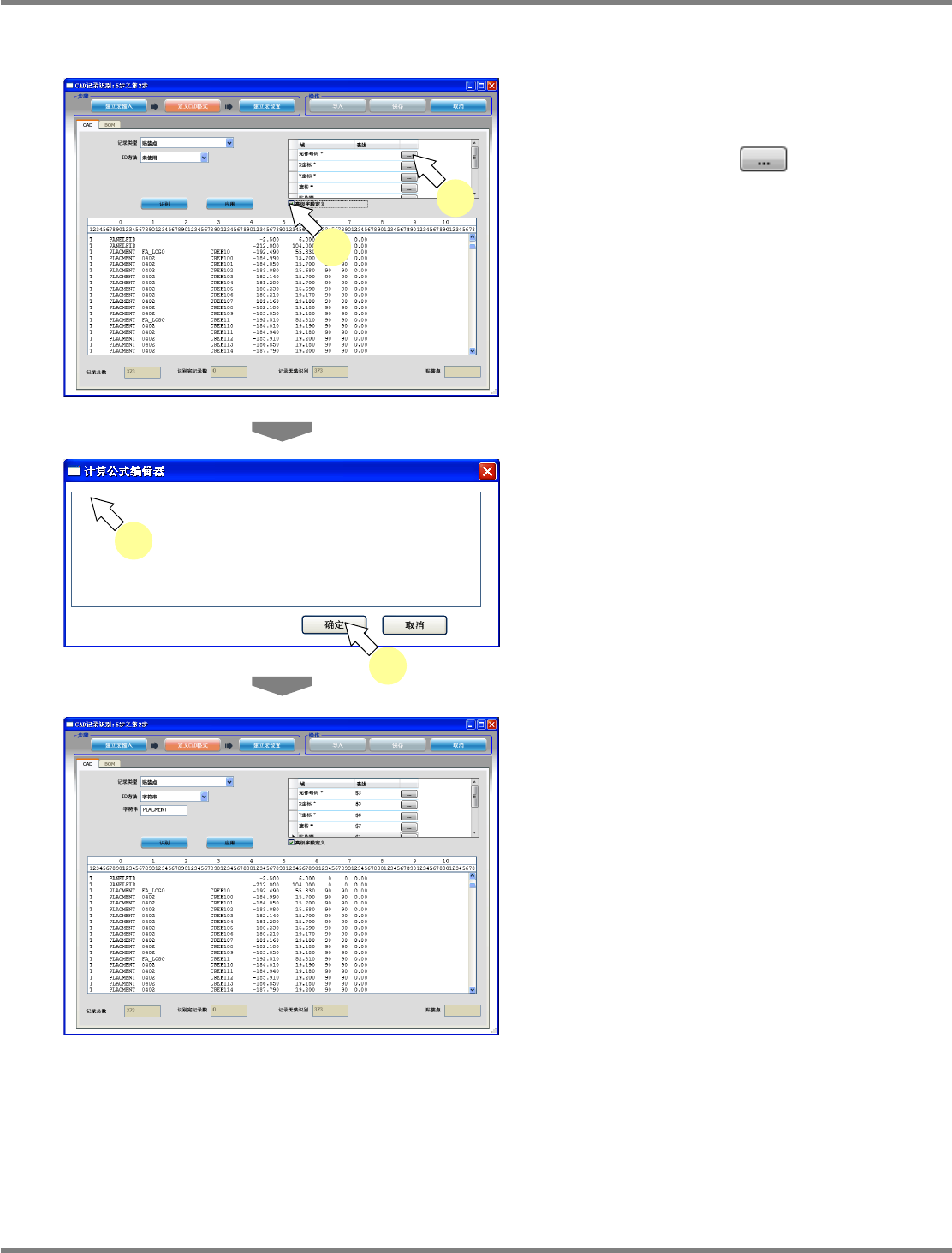 NPM-DGS 程序手册 5.2 CAD 宏的定义 Page 5-30 EJS9AC-MB-05P-03 3 进行式的编辑。 4 点击 [ 确定 ] 。 式将被设定。 Project050201S-2 8C00 Project050201S-2 7C00 3 4