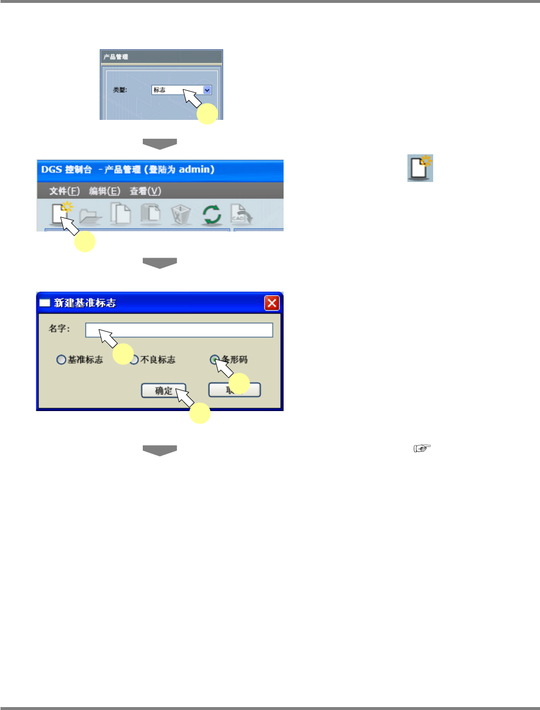 NPM-DGS 程序手册 5.7 标记的设定 Page 5-112 EJS9AC-MB-05P-03 6 在 ‘ 条形码形状 ’ 中选择形状。 7 在 ‘ 大小 ’ 栏里输入形状的大小。 8 在 ‘ 灯泡控制 ’ 中选择条形码的识别模 式。 选择手动时,请输入照明值。在通常 情况下, 照明值用设备进行示教而决定。 ( NPM-D 使用说明书 生产篇 ‘2.1.3 照明值 调整的设定 ’ , NPM-D2 使用说明书 操作篇 ‘6-2…