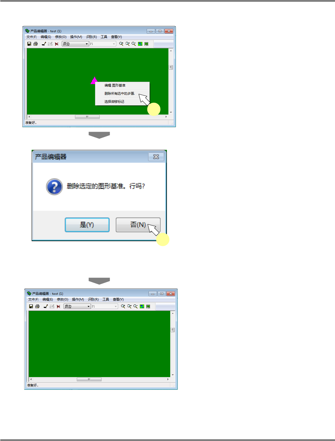 将从产品编辑器上删除所选择的图形基准。