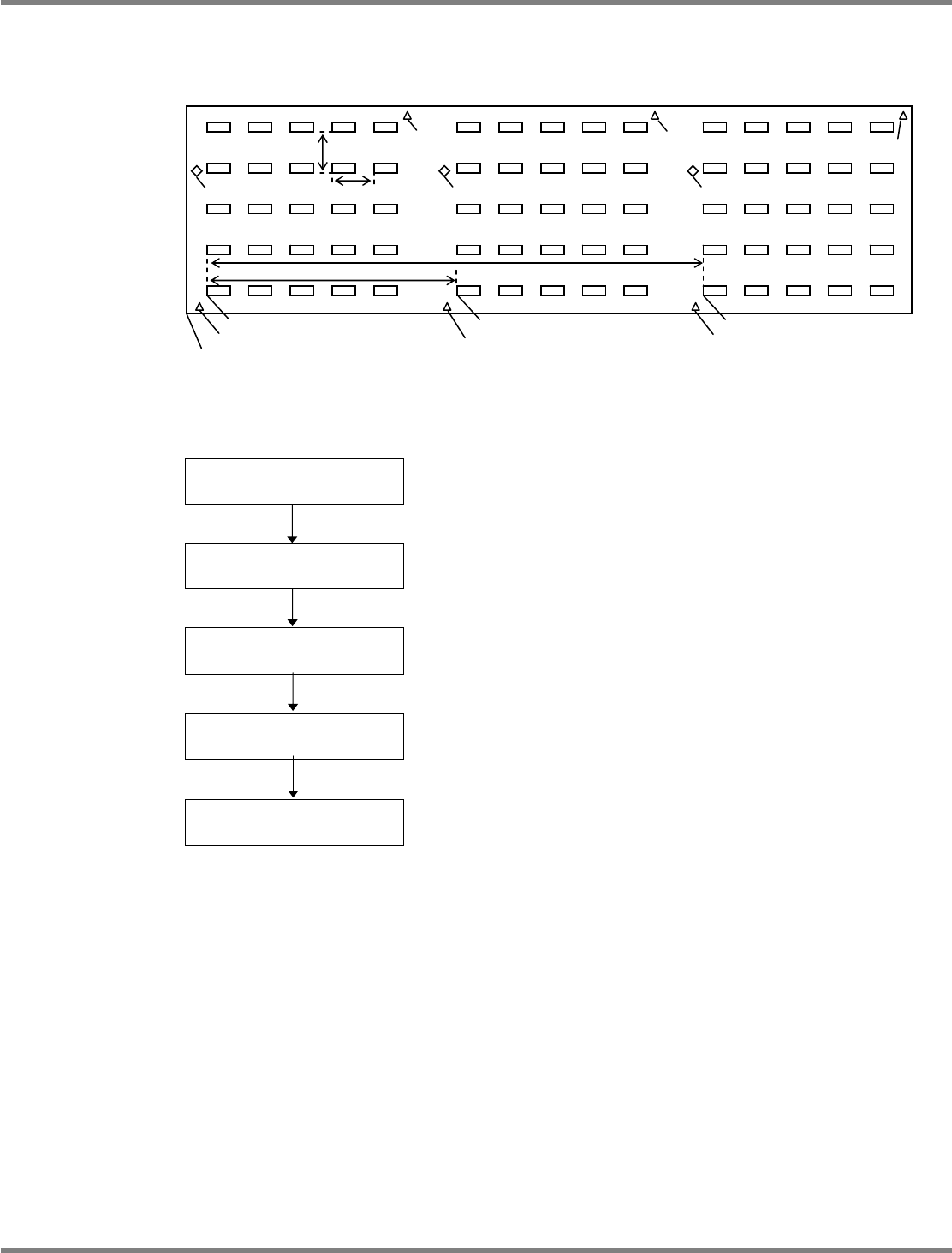 NPM-DGS 程序手册 5.8 PCB 编辑 Page 5-256 EJS9AC-MB-05P-03 5.8.8 图形组 所谓组的概念即是在基板与图形间的 中间的值。 使用图形组识别功能时,如下项目可 期待获得改善。 • 可试图识别时间的缩短。 ( 进行图形识别时,如果图形数目多,识 别时间会更长。 ) • 可提高补正精度。 ( 基板形状较细长的情况下,如果仅进行 基板识别,精度可能不太稳定。 ) 如下图所示,图形组识别对有多数图 形…