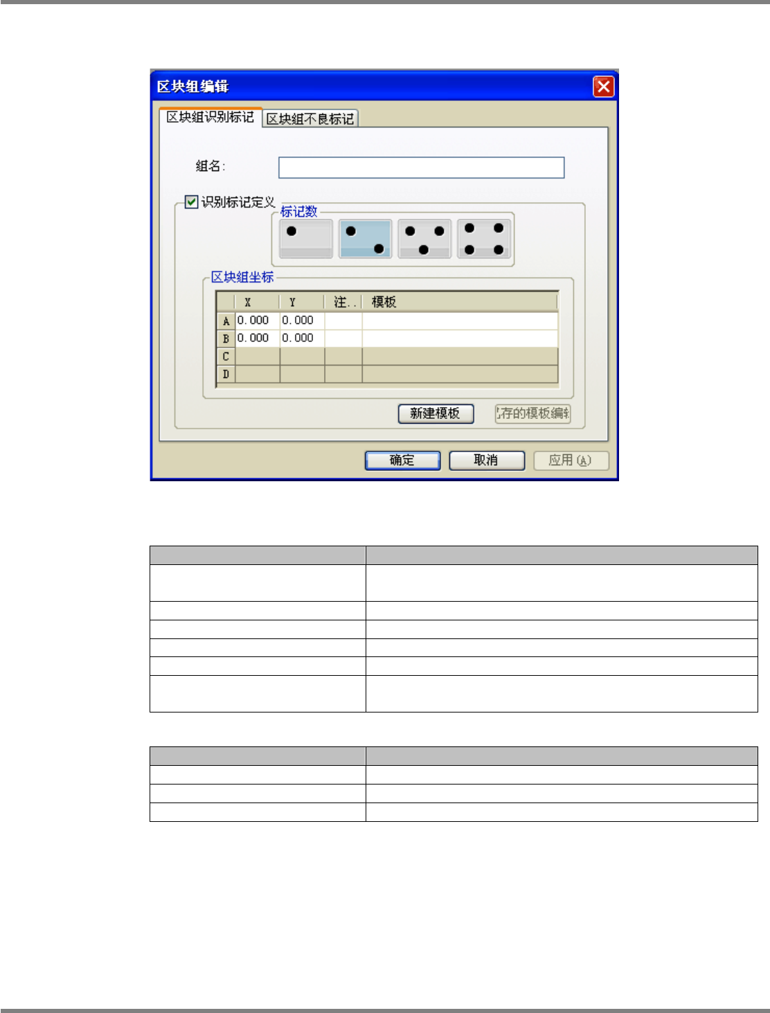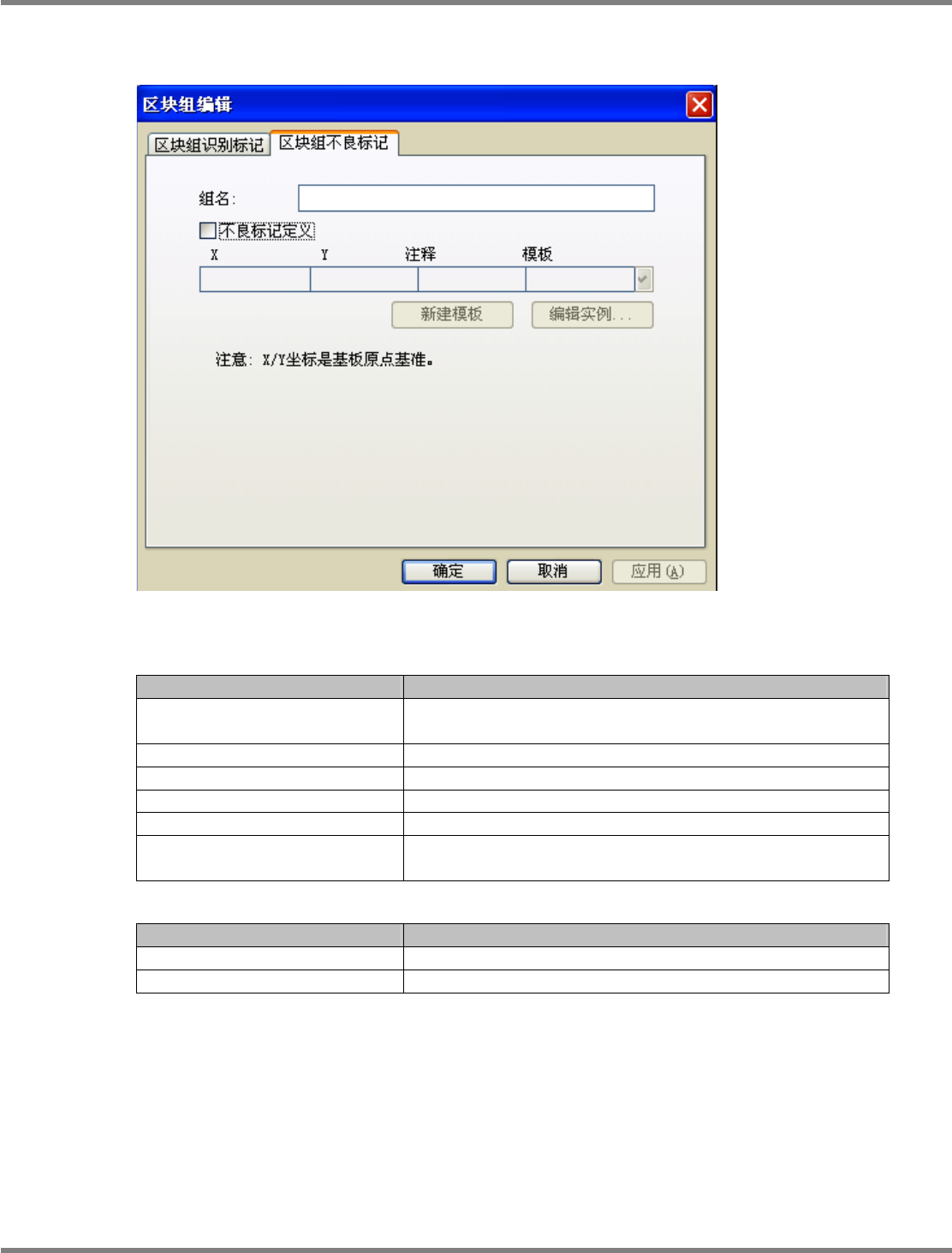 用在本图形组不良标记的模板标记。可选择在
